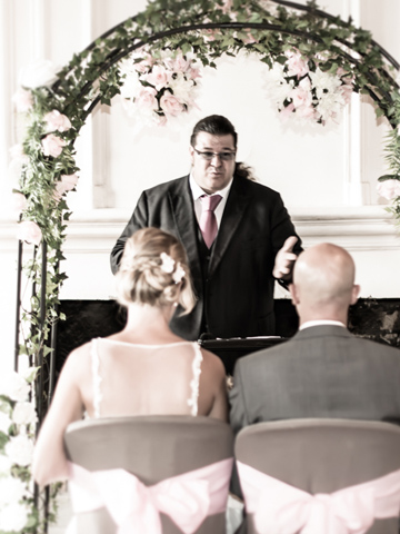 Il officiera comme maître de cérémonie de votre mariage, en vous mariant dans un lieu que vous aurez choisi tel que vignoble, au bord du lac, dans une forêt, dans un hôtel, etc.